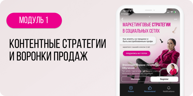 ◉ SMM-СПЕЦИАЛИСТ, которому не хватает знаний в маркетинге. Если вы уже работаете СММ-специалистом, и понимаете, что не знаете, как дать своему клиенту результат в виде ПРОДАЖ, потому что не умеете выстраивать единую маркетинговую стратегию и не знаете, как перенести ее в Instagram*, ВК, Телеграм. Но хотите остаться на рынке и стать штучным профессионалом с очередью из клиентов и повышенным чеком.